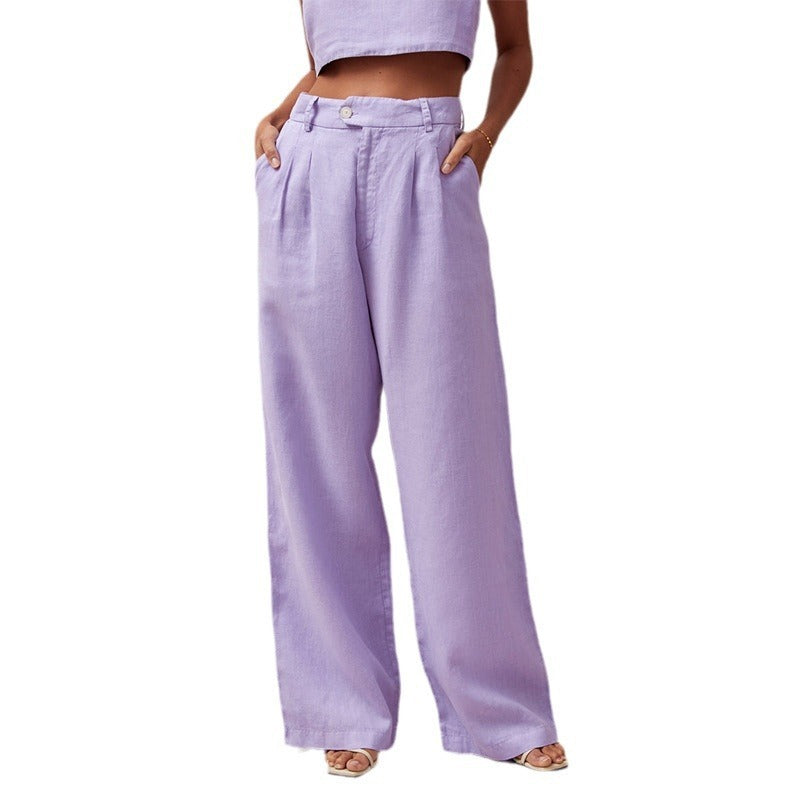 Pure Linen High Waist Drooping Straight-leg Pants Ladies